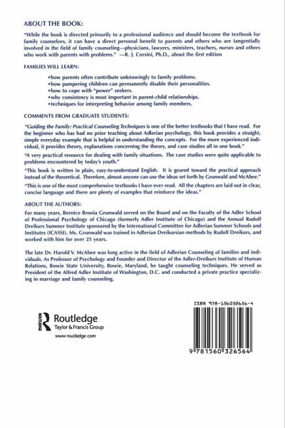 Based on the Individual Psychology as formulated by Alfred Adler and expanded by Rudolf Dreikurs, this second edition provides easily understood theory for the professional student and a wealth of practical suggestions for parents and educators.. It is designed to help parents, grandparents, baby sitters, clergy, teachers, nannies and others who may influence the child's psychological development. In addition to theoretical explanations, the book discusses in detail how to deal with problems and situations arising in family relationships. It teaches to understand the purpose of a child's misbehavior, and to motivate the child to reach its purpose through useful behavior. The book is full of illustrations, drawn from many years of experience of the authors. It discusses general day to day problems such as fighting, personal hygiene, doing poorly in school, bedtime, etc. There is a special chapter on addiction problems such as alcohol, cigarettes, computer, and television, and includes a detailed description of the various drugs of abuse and their effects. The book endeavors to restore parents' confidence in themselves and in their children. The book stresses the technique of encouragement, the application of logical consequences instead of punishment. How to use the family council in order to promote agreement, and to help the child to obtain it's goal through socially acceptable means. Much space is devoted to helping special families, such as single, divorced, and step parents.