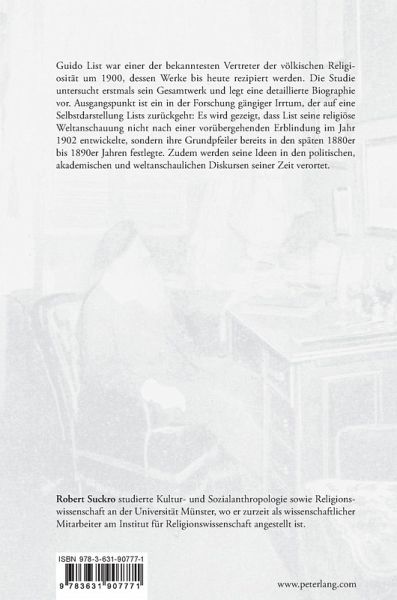 Guido List war einer der bekanntesten Vertreter der völkischen Religiosität um 1900, dessen Werke bis heute rezipiert werden. Die Studie untersucht erstmals sein Gesamtwerk und legt eine detaillierte Biographie vor. Ausgangspunkt ist ein in der Forschung gängiger Irrtum, der auf eine Selbstdarstellung Lists zurückgeht: Es wird gezeigt, dass List seine religiöse Weltanschauung nicht nach einer vorübergehenden Erblindung im Jahr 1902 entwickelte, sondern ihre Grundpfeiler bereits in den späten 1880er bis 1890er Jahren festlegte. Zudem werden seine Ideen in den politischen, akademischen und weltanschaulichen Diskursen seiner Zeit verortet.