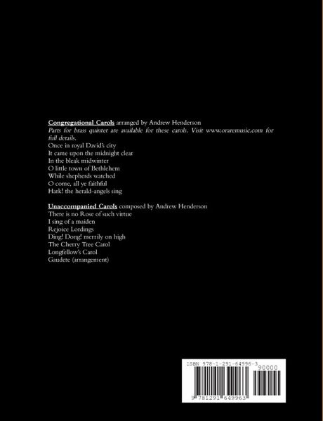 Seven congregational carols and seven unaccompanied carols by Andrew Henderson. Brass arrangements arr available for the congregational carols. CONGREGATIONAL CAROLS Once in royal David's city It came upon the midnight clear In the bleak midwinter O little town of Bethlehem While shepherds watched O come, all ye faithful Hark! the herald-angels sing UNACCOMPANIED CAROLS There is no Rose of such virtue I sing of a maiden Rejoice Lordings Ding! Dong! merrily on high The Cherry Tree Carol Longfellow's Carol Gaudete (arrangement)