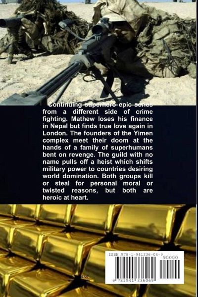 Mathew loses his finance in Nepal but finds true love again in London. The founders of the Yimen complex meet their doom at the hands of a family of superhumans bent on revenge. The guild with no name pulls off a heist which shifts military power to countries desiring world domination. Both groups kill or steal for personal moral or twisted reasons, but both are heroic at heart.