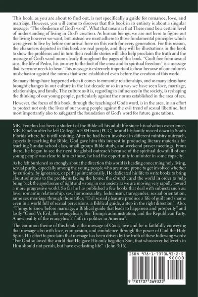 This book, as you are about to ¿ nd out, is not speci¿cally a guide for romance, love, and marriage. However, you will come to discover that this book in its entirety is about a singular message: "The obedience of God's word". What that means is that There must be a certain level of understanding of living in God's creation. As human beings, we are not here to ¿gure out the living however we want, but instead we must adhere to those fundamental principles which were given to live by before our arrival here on this earth for every generation. For this reason, the characters depicted in this book are real people, and they will be illustrations in the book to show the problems and in turn their real-life stories will also help proclaim the truth and the message of God's word more clearly throughout the pages of this book. "Guilt free from sexual sins, the life of Pedro, his journey to the foot of the cross and to spiritual freedom" is a message that everyone needs to hear. This message is extremely important to hear because of our culture's misbehavior against the norms that were established even before the creation of this world. So many things have happened when it comes to romantic relationships, and so many ideas have brought changes in our culture in the last decade or so in a way we have seen love, marriage, relationships, and family. The culture as it is, regarding its in¿uences in the society, is reshaping the thinking of our young people, particularly against the norms established in the area of sex. However, the focus of this book, through the teaching of God's word, is in the area, in an effort to protect not only the lives of our young people against the evil trend of sexual libertine, but most importantly also to safeguard the foundation of God's word for future generations.