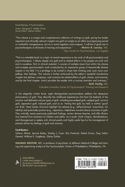 Acknowledgments Chapter 1: Guilt: An Introductory Overview Salman Akhtar, MD Chapter 2: Pinocchio's Journey to a 'Good Heart': Guilt, Reparation, and Transformation William Singletary, MD Chapter 3: Conscience and 'The Uncanny' in Psychoanalysis and in Pinocchio Elaine Zickler, PhD Chapter 4: Bearable and Unbearable Guilt: A Kleinian Perspective Desy Safán-Gerard, PhD Chapter 5: Guilt: Some Theoretical and Technical Considerations Robert Kravis, PsyD Chapter 6: Guilt in the Therapist and its Impact upon Treatment Stanley Coen, MD Chapter 7: Reflections on the Absence of Morality in Psychoanalytic Theory and Practice Elio Frattaroli, MD Chapter 8: Guilt and Its Vicissitudes: a Concluding Commentary Jeanne Bailey, PhD References Index Editors and Contributors