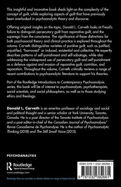 Offering original insights on the topic, Donald Carveth looks at Freud's failure to distinguish persecutory guilt from reparative guilt, and the superego from the conscience. The significance of these distinctions for both psychosocial theory and clinical practice is explored throughout the volume. Carveth distinguishes varieties of punitive guilt, such as justified, unjustified, "borrowed" or induced, existential and collective. He expertly describes patterns of self-punishment and self-sabotage, while also addressing the widespread use of persecutory guilt and self-punishment as a defence against and evasion of reparative guilt, contrition, and reparation. Throughout the volume, Carveth critically reviews a range of recent contributions to psychoanalytic literature to support his theories.