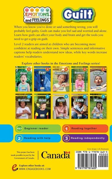 When you know you've done or said something wrong, you will probably feel guilty. Guilt can make you feel sad and worried and alone. Learn how guilt can affect your body and brain and get the tools you need to get a grip on guilt. Level 2 readers are aimed at children who are becoming more confident at reading on their own. Simple sentences and informative captions help readers understand new ideas, while key words increase readers' vocabulary. This project has been made possible in part by the Government of Canada.