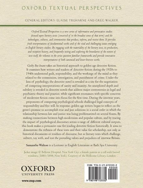 Guilty But Insane offers a timely and challenging discussion of the relationship between popular literature, science, and what it means to be human by examining how writers of detective fiction during the 1920s to 1940s understood guilt, responsibility, and the workings of the mind in relation to crime.