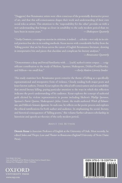 This study examines how Renaissance poets conceive the theme of killing as a specifically representational and interpretive form of violence. Closely reading both major poets and lesser known authors, Dennis Kezar explores the ethical self-consciousness and accountability that attend literary killing, paying particular attention to the ways in which this reflection indicates the poet's understanding of his audience. Kezar explores the concept of authorial guilt elicited by violent representation in poems including Skelton's Phyllyp Sparowe, Spenser's Faerie Queene, Shakespeare's Julius Caesar, the multi-authored Witch of Edmonton, and Milton's Samson Agonistes. In each case, he reflects on the poetic process and explores the ethical ramifications for both author and audience. In emphasizing the social, literary, and historical consequences of 'killing poems, ' this volume further advances scholarship in historicist and speech-act theories of the early modern period.