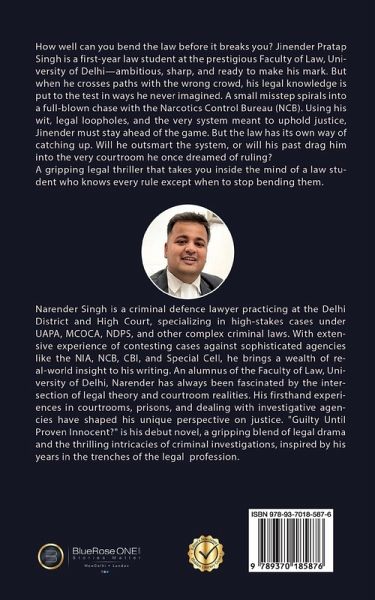 Guilty Until Proven Innocent?" is his debut novel of Adv Narender Singh, a gripping blend of legal drama and the thrilling intricacies of criminal investigations, inspired by his years in the trenches of the legal profession. Through this fictional story of a law student about his life at law school, I invite readers to step into the world of law students, where textbooks teach one version of justice, but reality tells another