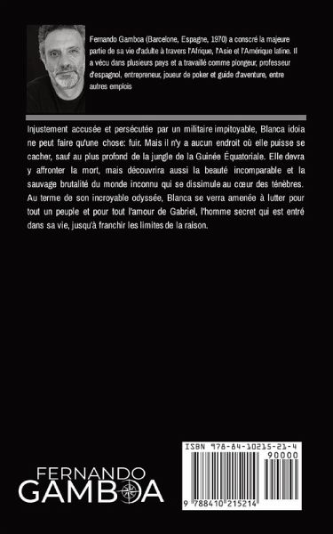 Plus qu'une aventure. Un thriller comme vous n'en avez jamais lu. Injustement accusée et persécutée par un militaire impitoyable, Blanca Idoia ne peut faire qu'une chose: fuir. Mais il n'y a aucun endroit où elle puisse se cacher, sauf au plus profond de la jungle de la Guinée Équatoriale. Elle devra y affronter la mort, mais découvrira aussi la beauté incomparable et la sauvage brutalité du monde inconnu qui se dissimule au c¿ur des ténèbres.Au terme de son incroyable odyssée, Blanca se verra amenée à lutter pour tout un peuple et pour l'amour de Gabriel, l'homme secret qui est entré dans sa vie, jusqu'à franchir les limites de la raison.