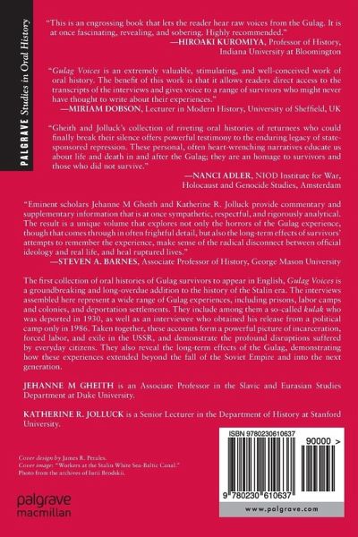 "Gheith and Jolluck's collection of riveting oral histories of returnees who couldfinally break their silence offers powerful testimony to the enduring legacy of state-sponsored repression. These personal, often heart-wrenching narratives educate us about life and death in and after the Gulag; they are an homage to survivors and those who did not survive." - Nanci Adler, NIOD Institute for War, Holocaust and Genocide Studies, Amsterdam