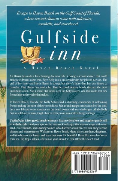 Escape to Haven Beach on the Gulf Coast of Florida, where second chances come with saltwater, seashells, and sisterhood. Ali Harris has made a life-changing decision. She's taking a second chance that could make new dreams come true. Faye Kelly is at a crossroads with her job and her son. The pull of her sister and Haven Beach is strong, but there's more than her own future to consider. Didi Rivera has told a lie. That lie could destroy bonds that are the most important to her. And a secret still looms over the Kelly Sisters, one that could test new friendships and reveal old mistakes. In Haven Beach, Florida, the Kelly Sisters find a charming community of welcoming friends making the most of their second acts. Salt air and mango sunsets can feed the soul, but a new life and sweet romance on the beach comes with new challenges. All the Kelly Sisters will have to make tough choices if they want sun-soaked happy endings. Gulfside Inn is feel-good, beachy women's fiction where love and laughter gently roll in with the tide. Find your spot on the hammock and enjoy this women's saga with warm sand, sweet friends, and amazing women who discover ocean breezes can bring second chances and even romance. Welcome to Haven Beach, where sisters, mothers, daughters, and friends share the humor and heart that make life beautiful. If you like a touch of sweet romance, flip-flops, salt air, and sun on your shoulders, you'll love this beach read.