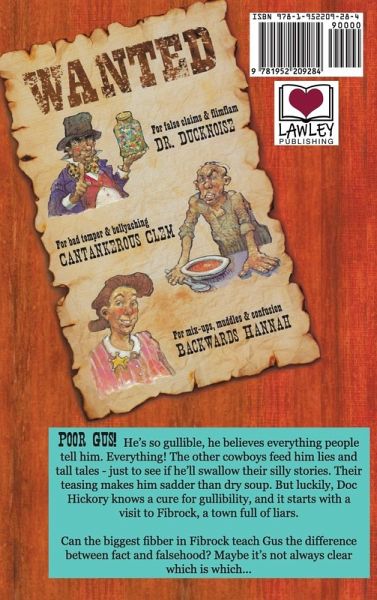 Poor Gus! He's so gullible, he believes everything people tell him. Everything! The other cowboys feed him lies and tall tales - just to see if he'll swallow their silly stories. Their teasing makes him sadder than dry soup. But luckily, Doc Hickory knows a cure for gullibility, and it starts with a visit to Fibrock, a town full of liars. Can the biggest fibber in Fibrock teach Gus the difference between fact and falsehood? Maybe it's not always clear which is which...