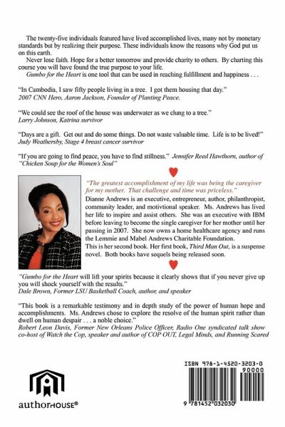 Gumbo for the Heart is a book that ignites and inspires your energies to keep on keeping on. The stories in this book reveal the power of faith. Through faith you can conquer all adversities in your path. The twenty-five individuals featured have lived accomplished lives, many not by monetary standards but by realizing their purpose. These individuals know the reason why God put us on this earth. Never lose faith. Hope for a better tomorrow and provide charity to others. By charting this course you will have found the true purpose to your life. Gumbo for the Heart is one tool that can be used in reaching fulfillment and happiness . . .