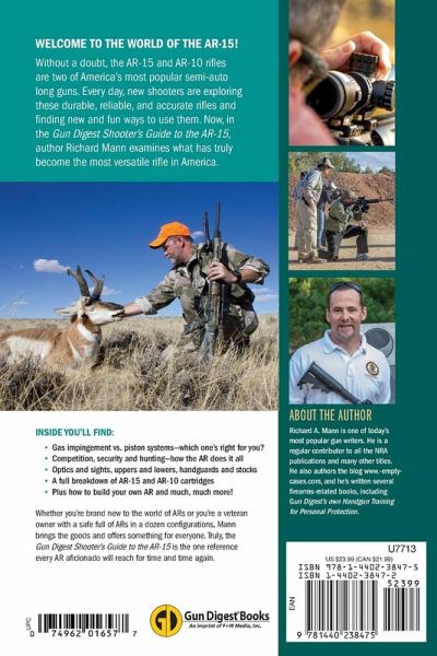 Welcome to the world of the AR-15! Without a doubt, the AR-15 and AR-10 rifles are two of America's most popular semi-auto long guns. Every day, new shooters are exploring these durable, reliable, and accurate rifles and finding new and fun ways to use them. Now, in the Gun Digest Shooter's Guide to the AR-15, author Richard Mann examines what has truly become the most versatile rifle in America. Inside you'll find: * Gas impingement vs. piston systems--which one's right for you? * Competition, security and hunting--how the AR does it all. * Optics and sights, uppers and lowers, handguards and stocks. * A full breakdown of AR-15 and AR-10 cartridges. * Plus how to build your own AR and much, much more! Whether you're brand new to the world of ARs or you're a veteran owner with a safe full of ARs in a dozen configurations, Mann brings the goods and offers something for everyone. Truly, the Gun Digest Shooter's Guide to the AR-15 is the one reference every AR aficionado will reach for time and time again.