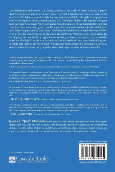 Gundamentalism and Where It Is Taking America is the work of James Atwood, a retired Presbyterian pastor and an avid deer hunter for half a century who has also been in the forefront of the faith community's fight for two constitutional rights: the right to keep and bear arms and the right to live in domestic tranquility, free of gun violence. He explains why guns mystically control so many Americans and exposes the fallacies of the gun industry's spurious claim that firearms actually protect us. He argues there are no bona fide scientific studies that show defensive guns save us from harm, while there is voluminous research showing a defensive gun puts the owner and his or her family at greater risk. Atwood's book, which details his learning of a lifetime in the struggle for reasonable gun laws in America, puts dependable social and theological analysis of our unique national epidemic into your hands along with scientific data that will provoke honest reflection and discussion for the building of a safer and saner America. Questions for group discussion and suggestions for action are included.