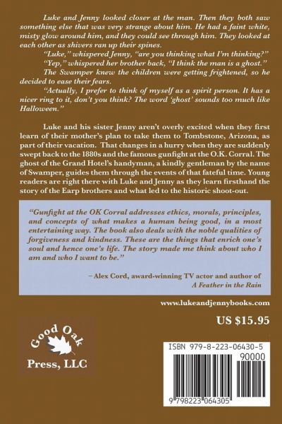 Luke and his sister Jenny aren't overly excited when they first learn of their mother's plan to take them to Tombstone, Arizona, as part of their vacation. That changes in a hurry when they are suddenly swept back to the 1880s and the famous gunfight at the O.K. Corral. The ghost of the Grand Hotel's handyman, a kindly gentleman by the name of Swamper, guides them through the events of that fateful time. Young readers are right there with Luke and Jenny as they learn firsthand the story of the Earp brothers and what led to the historic shootout.