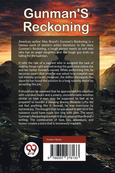 American author Max Brand's Gunman's Reckoning is a famous work of western action literature. In the story Gunman's Reckoning, a tough person meets an evil man who has an angel daughter, and the tough guy ends up falling for the bad man. It tells the tale of a vagrant who is assigned the task of making things right and retrieving the gold mine claims she and her father formerly owned. While performing this, he becomes aware that what he was asked to accomplish was not entirely accurate. However, the drifter disregards this since he has found the solution to a long-running desire by accepting this job. It should not be assumed that he approached this situation with a broken heart and a sneery, uncomfortable emotion similar to how a man may be supposed to feel as he prepared to murder a sleeping enemy. Because Lefty did not feel anything like it. Instead, he was overcome by extreme joy. The thought that he was about to get rid of this nuisance could have made him sing with glee. The novel Gunman's Reckoning is a superb illustration of Max Brand's writing. The combination of love, lies, adventure, and humor creates a story that is immensely readable.