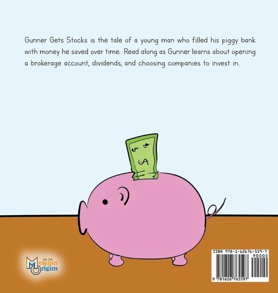 Gunner Gets Stocks is the tale of a young man who filled his piggy bank with money he saved over time. Read along as Gunner learns about opening a brokerage account, dividends, and choosing companies to invest in.