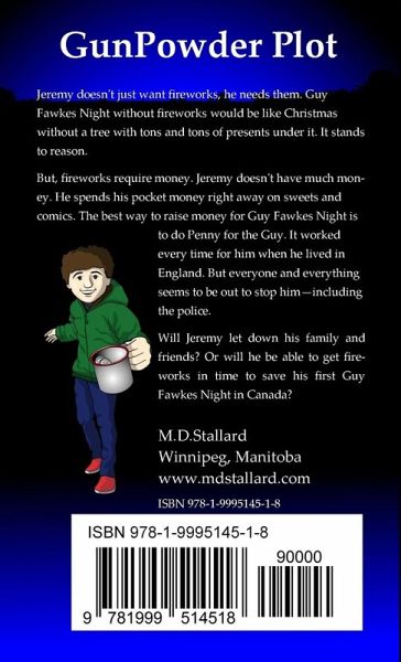 The second Jeremy Pratt adventure. Jeremy doesn't just want fireworks, he needs them. Guy Fawkes Night without fireworks would be like Christmas without a tree with tons and tons of presents under it. It stands to reason. But, fireworks require money. Jeremy doesn't have much money. He spends his pocket money right away on sweets and comics. The best way to raise money for Guy Fawkes Night is to do Penny for the Guy. It worked every time for him when he lived in England. But everyone and everything seems to be out to stop him-including the police. Will Jeremy let down his family and friends? Or will he be able to get fireworks in time to save his first Guy Fawkes Night in Canada?