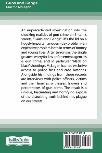 An unprecedented investigation into the shocking realities of gun crime on Britain's streets, ''Guns and Gangs'' lifts the lid on a hugely important modern-day problem - an expensive problem both in terms of money and young lives. After terrorism, the single greatest worry for law enforcement agencies is gun crime, and in particular 'black on black' shootings. McLagan has had exclusive access to police files and case histories. Alongside his findings from these records are interviews with police officers, victims and their families, witnesses, lawyers and perpetrators of gun crime. The result is a unique, fascinating and horrifying expose of the disturbing truth behind this plague on our streets.