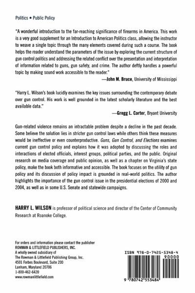 Gun-related violence remains an intractable problem despite a decline in the past decade. Some believe the solution lies in stricter gun control laws while others think these measures would be ineffective or counter-productive. Guns, Gun Control, and Elections examines current gun control policy and explains how it was adopted by discussing the roles and interactions of elected officials, interest groups, political parties, and the public. Original research on media coverage and public opinion as well as a chapter on state policy (Virginia) make the book both informative and accessible. The book focuses on the utility of gun policy, and its discussion of policy impact is grounded in real-world politics. The author highlights the importance of gun control in the presidential elections of 2000 and 2004 as well as in some U.S. Senate and statewide campaigns.
