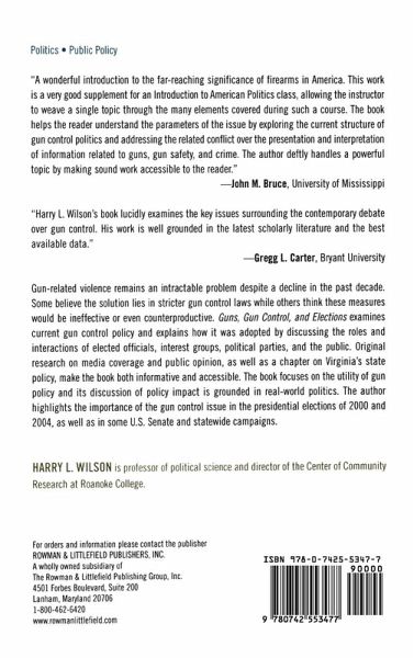 Gun-related violence remains an intractable problem despite a decline in the past decade. Some believe the solution lies in stricter gun control laws while others think these measures would be ineffective or counter-productive. Guns, Gun Control, and Elections examines current gun control policy and explains how it was adopted by discussing the roles and interactions of elected officials, interest groups, political parties, and the public. Original research on media coverage and public opinion as well as a chapter on state policy (Virginia) make the book both informative and accessible. The book focuses on the utility of gun policy, and its discussion of policy impact is grounded in real-world politics. The author highlights the importance of gun control in the presidential elections of 2000 and 2004 as well as in some U.S. Senate and statewide campaigns.