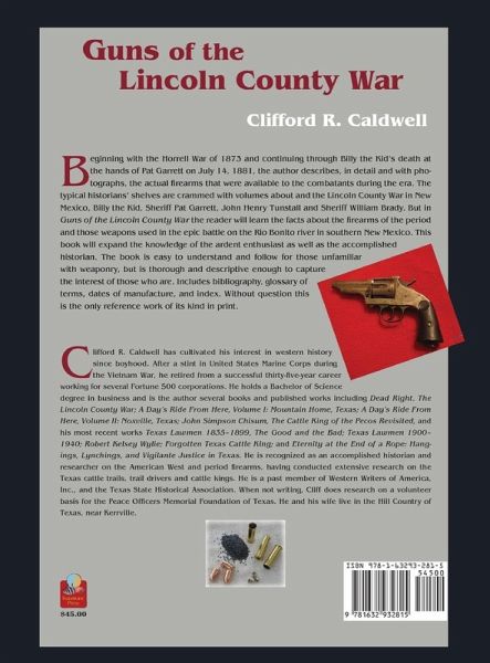 Beginning with the Horrell War of 1873 and continuing through Billy the Kid's death at the hands of Pat Garrett on July 14, 1881, the author describes, in detail and with photographs, the actual firearms that were available to the combatants during the era. The typical historians' shelves are crammed with volumes about and the Lincoln County War in New Mexico, Billy the Kid, Sheriff Pat Garrett, John Henry Tunstall and Sheriff William Brady. But in Guns of the Lincoln County War the reader will learn the facts about the firearms of the period and those weapons used in the epic battle on the Rio Bonito river in southern New Mexico. This book will expand the knowledge of the ardent enthusiast as well as the accomplished historian. The book is easy to understand and follow for those unfamiliar with weaponry, but is thorough and descriptive enough to capture the interest of those who are. Includes bibliography, glossary of terms, dates of manufacture, and index. Without question this is the only reference work of its kind in print.
