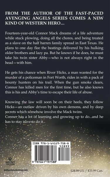 FROM THE AUTHOR OF THE FAST-PACED AVENGING ANGELS SERIES COMES A NEW KIND OF WESTERN HERO… Fourteen-year-old Connor Mack dreams of a life adventure while stuck plowing, doing all the chores, and being treated as a slave on the half barren family spread in East Texas. He plans to one day flee the beatings delivered by his hulking older brothers and lazy pa. But he knows if he does, he must take his twin sister Abby—who is not always right in the head—with him. He gets his chance when River Hicks, a man wanted for the murder of a policeman in Fort Worth, rides in with a pack of bounty hunters on his trail. When the gun smoke clears, Connor has killed men for the first time, but he also knows this is his and Abby’s time to escape their life of abuse. Knowing the law will soon be on their heels, they follow Hicks—an outlaw driven by his own demons, and by deep secrets which somehow involve the Mack twins. Conner has a lot of learning and growing up to do...and he has to stay alive to do it.