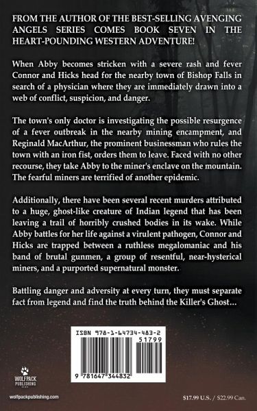 FROM THE AUTHOR OF THE BEST-SELLING AVENGING ANGELS SERIES COMES BOOK SEVEN IN THE HEART-POUNDING WESTERN ADVENTURE! When Abby becomes stricken with a severe rash and fever Connor and Hicks head for the nearby town of Bishop Falls in search of a physician where they are immediately drawn into a web of conflict, suspicion, and danger. The town's only doctor is investigating the possible resurgence of a fever outbreak in the nearby mining encampment, and Reginald MacArthur, the prominent businessman who rules the town with an iron fist, orders them to leave. Faced with no other recourse, they take Abby to the miner's enclave on the mountain. The fearful miners are terrified of another epidemic. Additionally, there have been several recent murders attributed to a huge, ghost-like creature of Indian legend that has been leaving a trail of horribly crushed bodies in its wake. While Abby battles for her life against a virulent pathogen, Connor and Hicks are trapped between a ruthless megalomaniac and his band of brutal gunmen, a group of resentful, near-hysterical miners, and a purported supernatural monster. Battling danger and adversity at every turn, they must separate fact from legend and find the truth behind the Killer's Ghost…