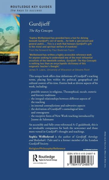 'Sophia Wellbeloved's Gurdjieff: The Key Concepts is an essential guide for students of Gurdjieff. It will also be of serious interest to students and scholars of all the Western transformational traditions. This book breaks new ground and further serious analysis of Gurdjieff's contribution to the Western cultural trajectory cannot be far in the future.' - Lynn Quirolo, Stopinder: A Gurdjieff Journal For Our TIme