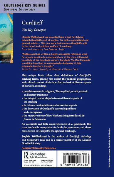 'Sophia Wellbeloved's Gurdjieff: The Key Concepts is an essential guide for students of Gurdjieff. It will also be of serious interest to students and scholars of all the Western transformational traditions. This book breaks new ground and further serious analysis of Gurdjieff's contribution to the Western cultural trajectory cannot be far in the future.' - Lynn Quirolo, Stopinder: A Gurdjieff Journal For Our TIme