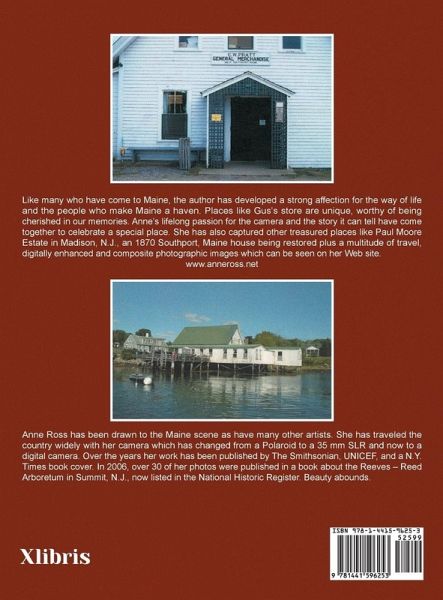 Like many who have come to Maine, the author has developed a strong affection for the way of life and the people who make Maine a haven. Places like Gus's store are unique, worthy of being cherished in our memories. Anne's lifelong passion for the camera and the story it can tell have come together to celebrate a special place. She has also captured other treasured places like Paul Moore Estate in Madison, N.J., an 1870 Southport, Maine house being restored plus a multitude of travel, digitally enhanced and composite photographic images which can be seen on her Web site. www.anneross.net