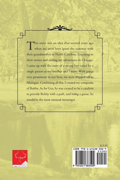 This story was an idea that started years ago when my twin boys spent the summer with their grandmother in North Carolina. Listening to their stories and adding my adventures in Chicago, I came up with the story of a young boy raised by a single parent as my brother and I were. With gangs very prominent in our lives, we were shipped off to Michigan. Combining all this, I created my composite of Bobby. As for Gus, he was created to be a catalysis to provide Bobby with a path, and being a goose, he would be the most unusual messenger.