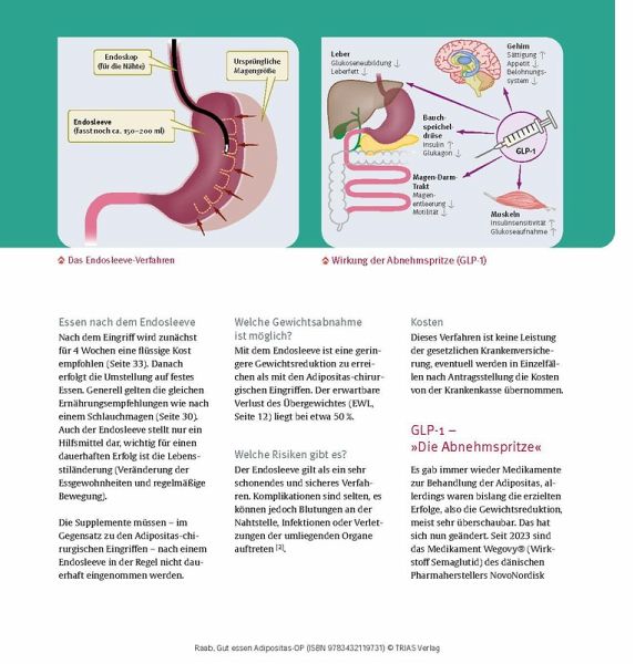 Sich für eine Adipositas-OP zu entscheiden, ist ein großer Schritt - und eine gute Ernährung davor und danach ist ganz besonders wichtig für den Erfolg. Dieser Ernährungsratgeber der Expertin Dr. Heike Raab begleitet seit Jahren zuverlässig Menschen in dieser besonderen Phase. Die aktualisierte Auflage bietet zusätzlich Informationen zum endoskopischen Schlauchmagen (Endosleeve), zu den aktuellen Abnehmspritzen und neue Rezepte für die Proteinphase vor der OP.