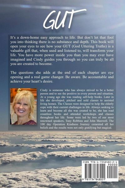 It's a down-home easy approach to life. But don't let that fool you into thinking there is no substance and depth. This book will open your eyes to see how your GUT (God Uttering Truths) is a valuable gift that, when used and listened to, will transform your life. You have more power inside you than you may ever have imagined and Cindy guides you through so you can truly be all you are created to become. The questions she adds at the end of each chapter are eye opening and a real game changer. Be aware. Be accountable and achieve your heart's desire.