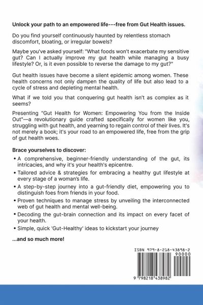 Unlock your path to an empowered life---free from debilitating gut health issues, even if countless diets have already failed you. Do you find yourself continuously haunted by relentless stomach discomfort, bloating, or irregular bowels? Have you been surfing the internet, sifting through scores of health advice, only to be left more confused than before? Are you tired of feeling isolated due to the mounting frustration of your unresolved gut concerns? Maybe you've asked yourself: "What foods won't exacerbate my sensitive gut? Can I actually improve my gut health while managing a busy lifestyle? Or, is it even possible to reverse the damage to my gut?" You're far from alone! Gut health issues have become a silent epidemic among women. These health concerns not only dampen the quality of life but also lead to a spiraling cycle of stress and depleting mental health. What if we told you that conquering gut health isn't as complex as it seems? Presenting "Gut Health for Women: Empowering Your Body From the Inside Out"-a revolutionary guide crafted specifically for women like you, struggling with gut health, and yearning to regain control of their lives. It's not merely a book; it's your road to an empowered life, free from the grip of gut health woes.