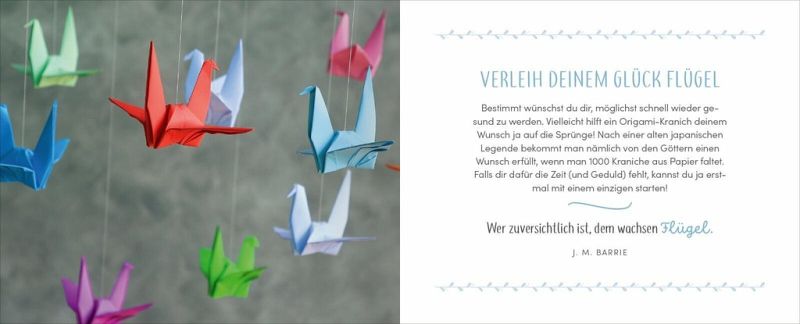 Dieses originelle Buch mit Seiten zum Aufschneiden enthält 33 Glücklichmachmomente für liebe Menschen, die Zuspruch benötigen. Ein ganz besonderer Genesungsbegleiter für alle, denen man von Herzen gute Besserung wünschen möchte!