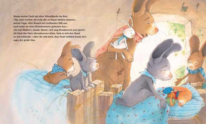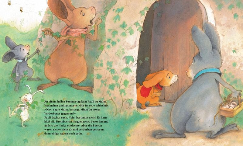 Pauli fühlt sich gar nicht gut, denn er hat Bauchschmerzen und ihm ist übel. Dabei hat er nur Brombeeren vom Strauch im Garten genascht und die waren auch gar nicht schlecht, sondern wunderbar reif. Nun liegt er im Bett und fühlt sich so krank. Sogar so schlecht, dass seine