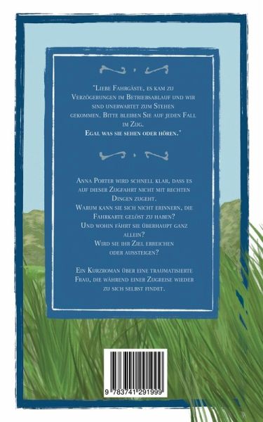 "Liebe Fahrgäste, es kam zu Verzögerungen im Betriebsablauf und wir sind unerwartet zum Stehen gekommen. Bitte bleiben Sie auf jeden Fall im Zug. Egal was sie sehen oder hören." Anna Porter wird schnell klar, dass es auf dieser Zugfahrt nicht mit rechten Dingen zugeht. Warum kann sie sich nicht erinnern, die Fahrkarte gelöst zu haben? Und wohin fährt sie überhaupt ganz allein? Wird sie ihr Ziel erreichen oder aussteigen? Ein Kurzroman über eine traumatisierte Frau, die während einer Zugreise wieder zu sich selbst findet.