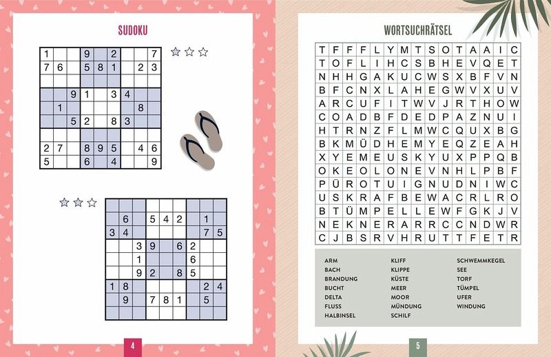 - Sonniger Urlaubslook: Viel gute Laune dank fröhlich-bunter Gestaltung der Rätselseiten