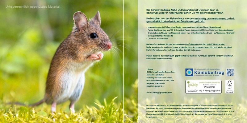 Die kleine Maus ist fröhlich aufgewacht. Auf ihrem Weg über die Wiese begegnet sie einem Mistkäfer, einer Spinne und einer Heuschrecke. Doch die haben alle schlechte Laune. Das macht die kleine Maus ganz bekümmert. Gut, dass sie schließlich die Schnecke trifft, denn diese weiß Rat ... Das Bilderbuch erzählt eine Geschichte über kleine alltägliche Ärgernisse im Leben und die Kunst, trotzdem fröhlich zu sein. Wunderschöne, liebevoll ausgewählte Tier- und Naturfotografien aus der Mausperspektive illustrieren die fröhliche Erzählung. Sie eröffnen dem Betrachter zudem eine ganz neue, wunderbare Perspektive. Die Geschichte ist durchgängig in kindgerechter Sprache verfasst. Sie regt Kinder und Erwachsene dazu an, auch die kleinen Dinge ihrer Umgebung zu beachten, und schult die Achtsamkeit für die unscheinbaren Schönheiten, die überall nur darauf warten, entdeckt zu werden. Das Buch ist mit farbigen Natur- und Tierfotografien bebildert und lässt den Betrachter tief eintauchen in die Welt einer strahlenden, morgendlichen Sommerwiese und ihre kleinen Bewohner. Ein Buch, das Kinder und Erwachsene fröhlich macht. Die Märchen von der kleinen Maus werden nachhaltig, umweltschonend und mit gesundheitlich unbedenklichen Substanzen gedruckt: - Innenseiten aus 100 % Recycling-Papier, ausgezeichnet mit dem Blauen Umweltengel - Pappe des Einbandes aus 100 % Recycling-Papier, bezogen mit FSC-zertifiziertem Bilderdruckpapier - Druckfarben auf Basis von Pflanzenöl - Faden- statt Klebebindung - Lacke auf Wasserbasis Die beim Druck dieses Buches entstandenen CO2-Emissionen werden zu 100 % kompensiert. 20 Seiten, durchgängig liebevoll mit Tier- und Naturfotografien illustriert. Vierfarbig gedruckt. Groß-Format 21,5 x 21,5 cm. Hardcover. Dieser Band ersetzt die bisherige Softcover-Ausgabe.
