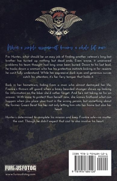 When a simple assignment becomes a whole lot more... For Hunter, what should be an easy job of finding another veteran's long-lost brother has turned up nothing but dead ends. Even worse, it uncovered problems his team thought had long since been buried. Down to his last lead, he tracks down a woman who has his protective instincts kicking in for reasons he can't fully understand. While her expressive dark eyes and generous curves catch his attention, it's her fiery temper that holds it. Back in her hometown, hiding from a man who almost destroyed her life, Frankie's thrown off guard when a bossy bearded stranger shows up looking for information on the biker she'd rather forget. And he's not taking no for an answer. With more to protect than herself now, she knows firsthand what can happen when you place your trust in the wrong person, but something about the former Green Beret has her not only letting him into her home but also her heart. Hunter's determined to complete his mission and keep Frankie safe-no matter the cost. Though he didn't expect that cost to also involve his heart. Note: Hunter is the third book of the Guts & Glory series, a six-book spin-off from my Dirty Angels MC series. While it's recommended to read both series in order, each book can be read as a stand-alone. As with all my books, this has an HEA, no cliffhanger or cheating.