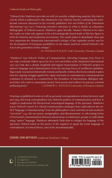 Drawing on published works as well as personal correspondence, this book sheds new light on Guy Debord’s work on the spectacle, arguing that he offers a politics of communication that relies on the ironic language of contradiction, of critical theory, and of the incommunicable to undermine the hierarchical language of the spectacle.