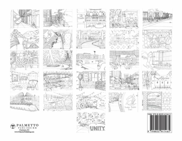 Thank you so much for supporting a local Greenville artist. This book highlights some of my favorite local spots in Greenville South Carolina. And thank you especially to all of the owners, builders, workers, and people who have made Greenville a place I am proud to call home. I hope you appreciate all of the beautiful places around town and visit them before/after you color them.