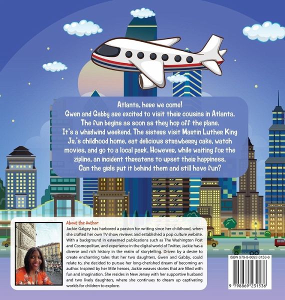 Atlanta, here we come! Gwen and Gabby are excited to visit their cousins in Atlanta. The fun begins as soon as they hop off the plane. It's a whirlwind weekend. The sisters visit Martin Luther King Jr.'s childhood home, eat delicious strawberry cake, watch movies, and go to a local park. However, while waiting for the zipline, an incident threatens to upset their happiness. Can the girls put it behind them and still have fun?