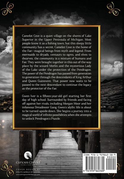 Camelot Cove is a quiet village on the shores of Lake Superior in the Upper Peninsula of Michigan. Most people know it as a fishing town, but this sleepy little community has a secret. Camelot Cove is the home of the Fae-magical beings from myth and legend. From mermaids to dryads, centaurs to ogres, and elves to dwarves, the community is a mixture of humans and Fae. They were brought together in this out-of-the-way place by the wizard Merlin and the mysterious Lady of the Lake under the protection of the Pendragon. The power of the Pendragon has passed from generation to generation through the descendants of King Arthur and Queen Guinevere. That power now waits to be passed to the next descendant to continue the legacy as the protector of the Fae. Gwen Iver is a fifteen-year-old girl starting her first day of high school. Surrounded by friends and facing off against her rivals, including Morgan Moor and her infamous Dreadmoor Gang, Gwen's idyllic life is about to be turned upside-down. She begins a journey into a magical world of infinite possibilities when she attempts to unlock Pendragon's Puzzle.