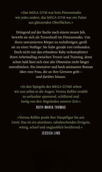Clever, witzig und wild: mit ihrem neuen Roman erobert Verena Keßler das Fitnessstudio literarisch und »pusht ihre Hauptfigur bis ans Limit.« (Jessica Lind)Glänzende Spiegel, definierte Körper, legere Flirts am Tresen. Die Protagonistin in Verena Keßlers knalligem Roman liebt ihren neuen Job im MEGA GYM. Es gibt keinen Leistungsdruck, keine Überstunden, dafür liebenswerte Kolleginnen und einen Chef, der stolzer Feminist ist. Alles perfekt, wäre da nicht die klitzekleine Lüge, zu der sie sich im Einstellungsgespräch hat hinreißen lassen. Sie habe kürzlich erst entbunden, hat sie behauptet, und jetzt wollen alle Babyfotos sehen und fragen ständig nach "dem Kleinen". Doch erst, als Bodybuilderin Vick auftaucht, wird klar, dass ein erfundenes Kind nicht das einzige Geheimnis dieser verschwiegenen Erzählerin ist. Eine Geschichte über Obsession, Ehrgeiz und die selbstzerstörerische Kehrseite schöner Oberflächen.