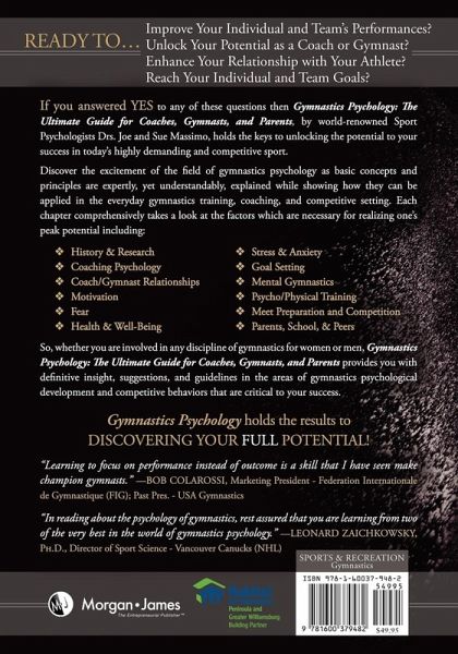 "Gymnastics Psychology" takes a comprehensive look at the factors that are necessary for training champions while emphasizing concern for the athlete’s psychological status, regardless of the level of achievement. The easy-to-follow articles cover the interpersonal relationships of coaches and athletes, psychological issues pertaining to motivation and fear management, meet preparation and goal setting, as well as vital family, school and peer relationships. The authors provide definitive insight in the areas of psychological development and competitive behaviors that are critical to success.