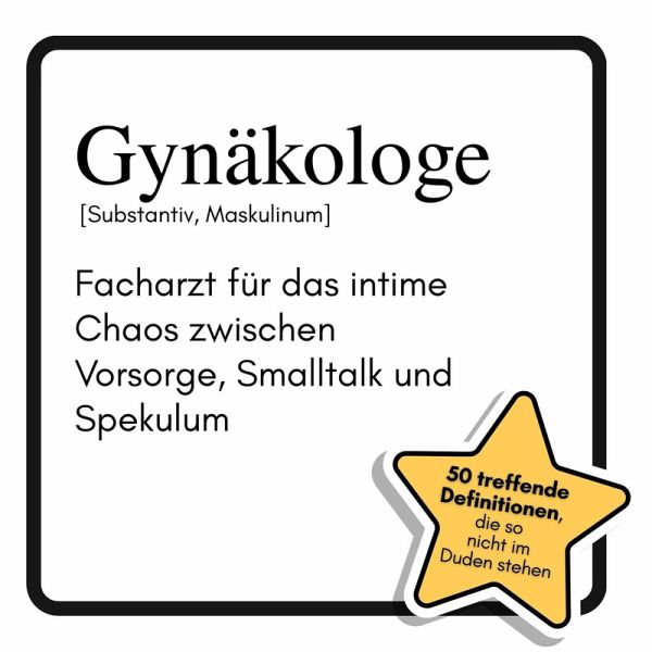 Wer glaubt, beim Frauenarzt gehe es nur um medizinische Fakten, hat noch nie hinter die Kulissen geblickt! "Gynäkologe: Facharzt für das intime Chaos zwischen Vorsorge, Smalltalk und Spekulum" enthüllt mit spitzer Feder und scharfem Blick die skurrile Welt zwischen Wartezimmer und Kreißsaal - von Gleitgelspender bis Menstruationskalender, von Hormontsunami bis Parkplatzsuche.Für wen dieses Buch perfekt ist:- Für alle, die den Praxisalltag mit Humor nehmen wollen- Für Mediziner und medizinisch Interessierte mit Sinn für Ironie- Für Fans von witzigen Illustrationen und pointierten DefinitionenEin Geschenk, das garantiert für Lacher sorgt und den Blick auf den Gynäkologen-Alltag völlig neu sortiert. Jede der 50 Definitionen wird von einer passenden Illustration begleitet - ein Rundumschlag durch das Chaos zwischen Spekulum, Smalltalk und Sprechstunde.Was dieses Buch bietet:- 50 humorvolle Definitionen aus dem Gynäkologen-Kosmos- Passende Illustrationen zu jedem Begriff- Ein originelles Geschenk für Mediziner und Laien- Medizinische Themen mit einer Prise Sarkasmus