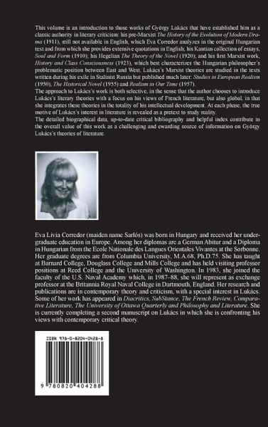 This volume is an introduction to those works of György Lukács that have established him as a classic authority in literary criticism: his pre-Marxist The History of the Evolution of Modern Drama (1911), still not available in English, which Eva Corredor analyzes in the original Hungarian text and from which she provides extensive quotations in English; his Kantian collection of essays, Soul and Form (1910); his Hegelian The Theory of the Novel (1920); and his first Marxist work, History and Class Consciousness (1923), which best characterizes the Hungarian philosopher's problematic position between East and West. Lukács's Marxist theories are studied in the texts written during his exile in Stalinist Russia but published much later: Studies in European Realism (1950), The Historical Novel (1955) and Realism in Our Time (1957).