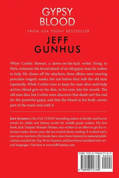 When Corbin Stewart, a down-on-his-luck writer living in Paris, witnesses the brutal attack of an old gypsy man, he rushes to help. He chases off the attackers, three albino men wearing porcelain tragedy masks, but not before they stab the old man repeatedly. While Corbin tries to keep the man alive until help arrives, blood gets on his skin, in his eyes, into his mouth. The old man dies, but Corbin soon discovers that death isn’t the end for the powerful gypsy, and that the blood in his body carries part of the man’s soul with it. Gypsy Blood is peak nightmare aesthetic, and this bizarre murder mystery set in the chilly labyrinth of Paris is sure to keep many awake at night. –Foreword Reviews Gunhus’s use of imagery and description is infectious, unleashing a virtual film reel within the imagination of readers. –Horror News Network Gypsy Blood represents horror writing at its most chilling. –Midwest Book Review